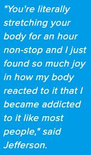 "You're literally stretching your body for an hour non-stop and I just found so much joy in how my body reacted to it that I became addicted to it like most people," said Jefferson.